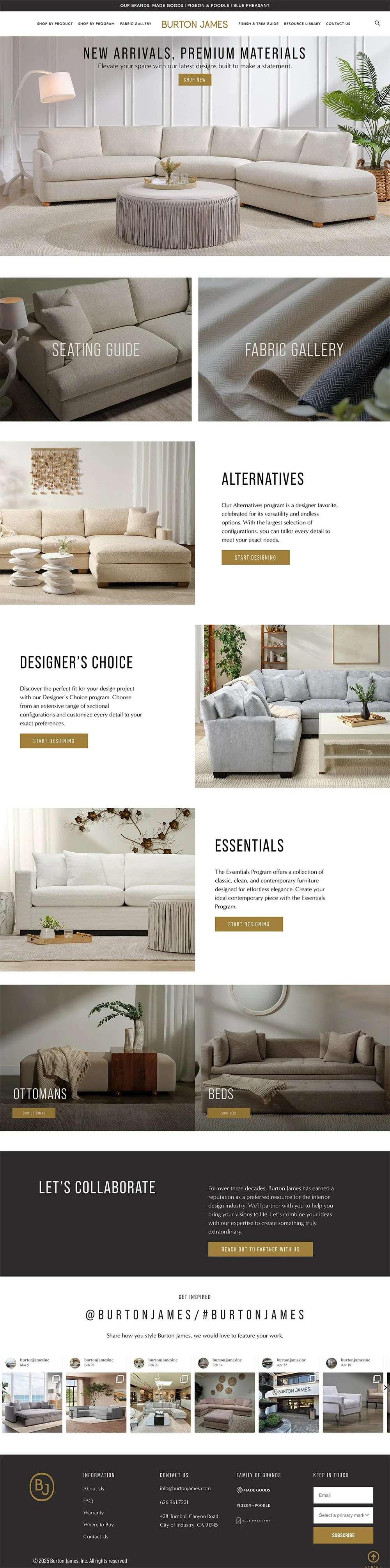 A trusted name in interior design for over 30 years, Burton James was ready for a new chapter. To help them connect with a broader, style-savvy audience, we reimagined their legacy brand, modernizing the site and messaging into a sleek, sophisticated platform built for today’s interior designer.